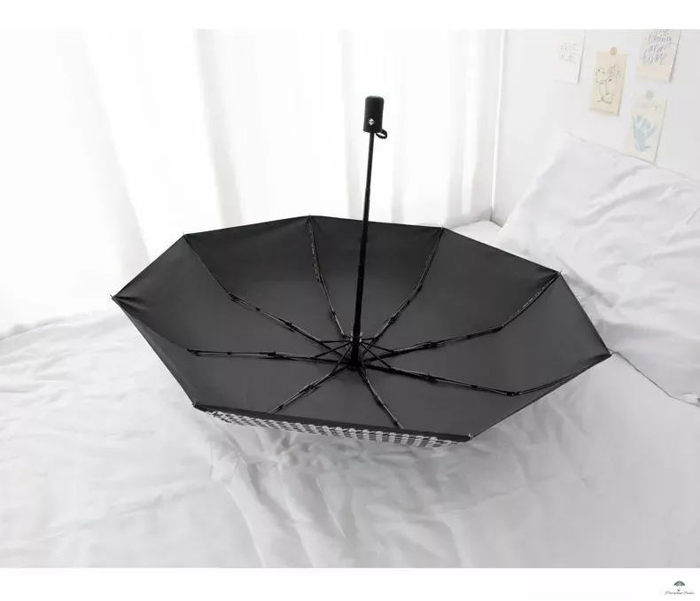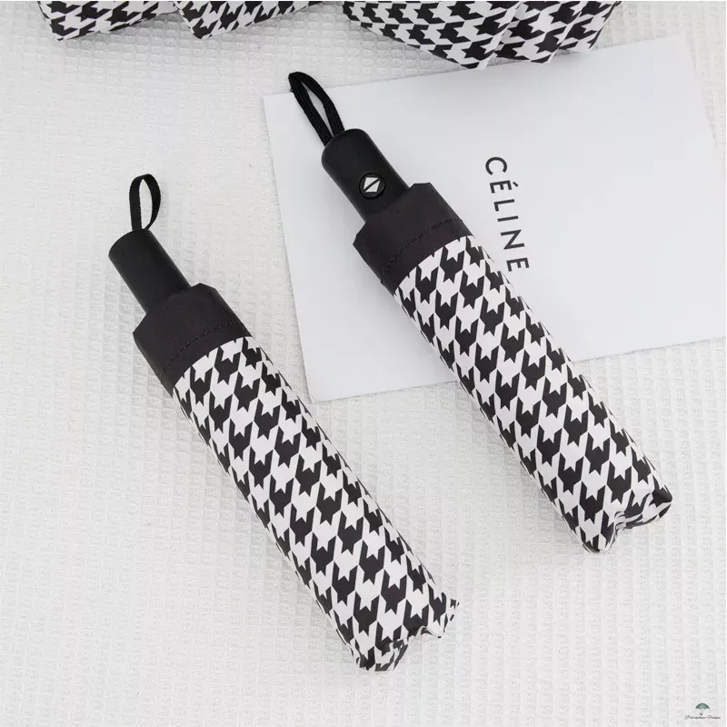 Facile à transporter et à utiliser, ce parapluie automatique motif pied-de-poule est parfait pour les jours de pluie comme les sorties shopping.
